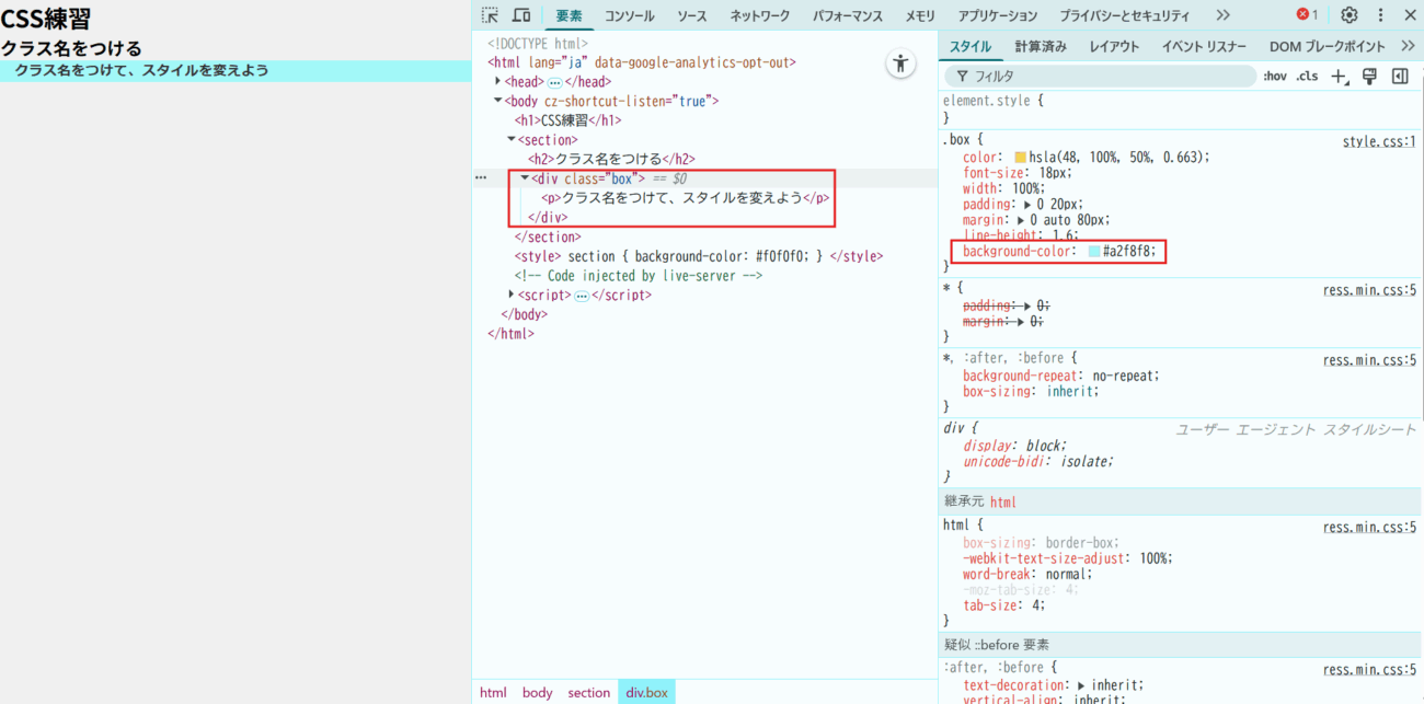 Webページでは、同じスタイルを使いまわすことが多いので、その場合はクラス名を流用して要素へ設定します。