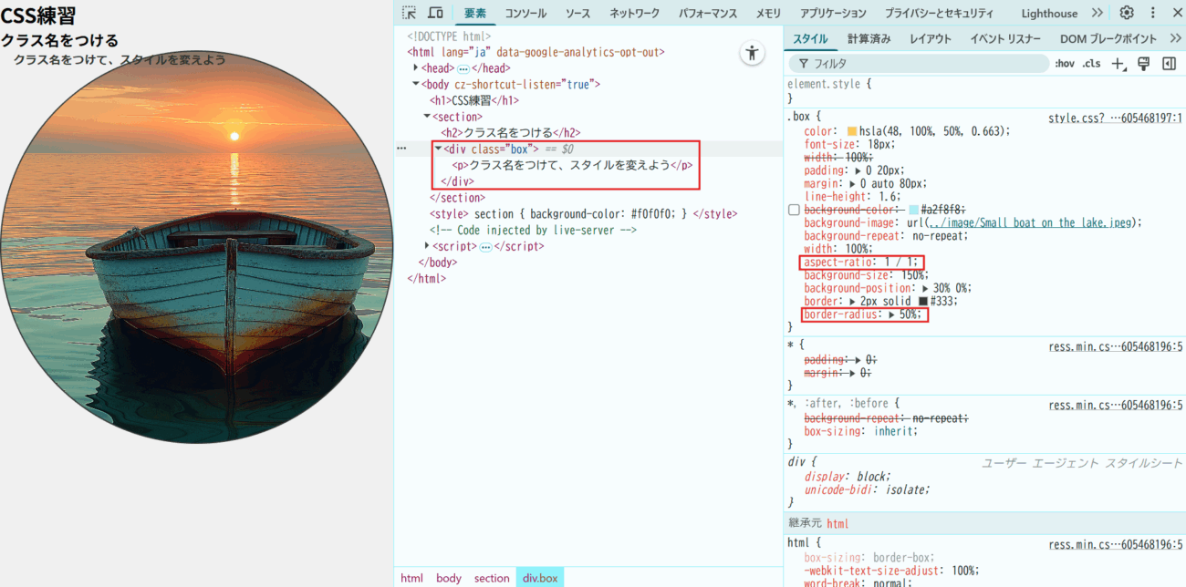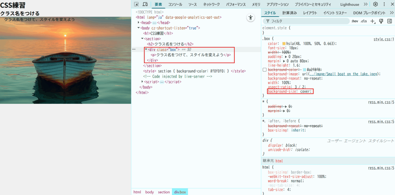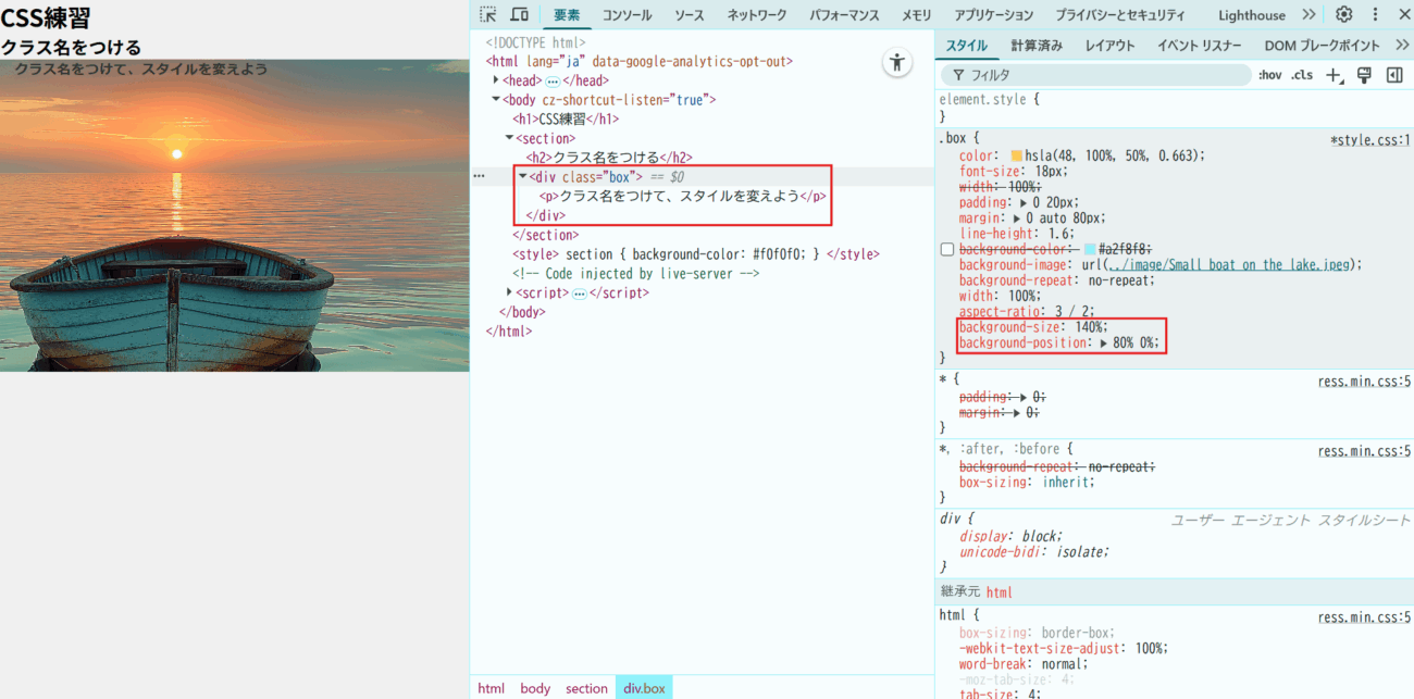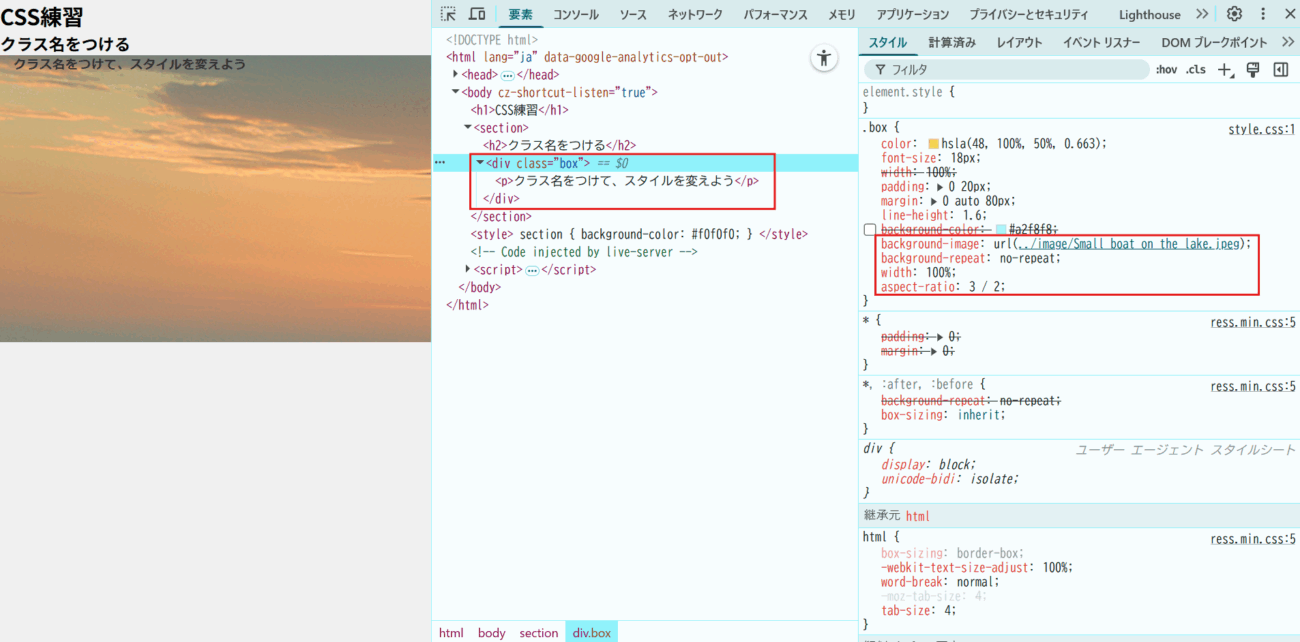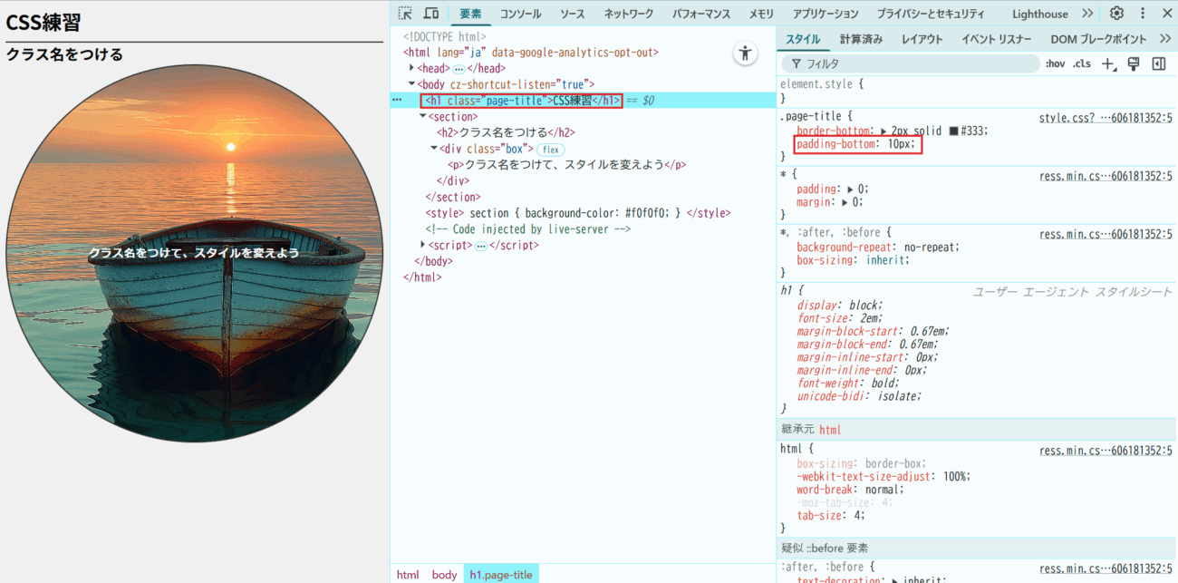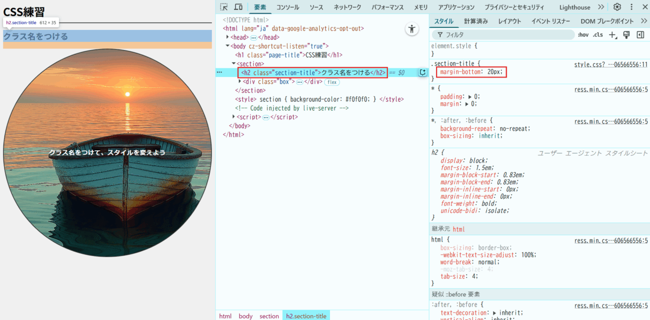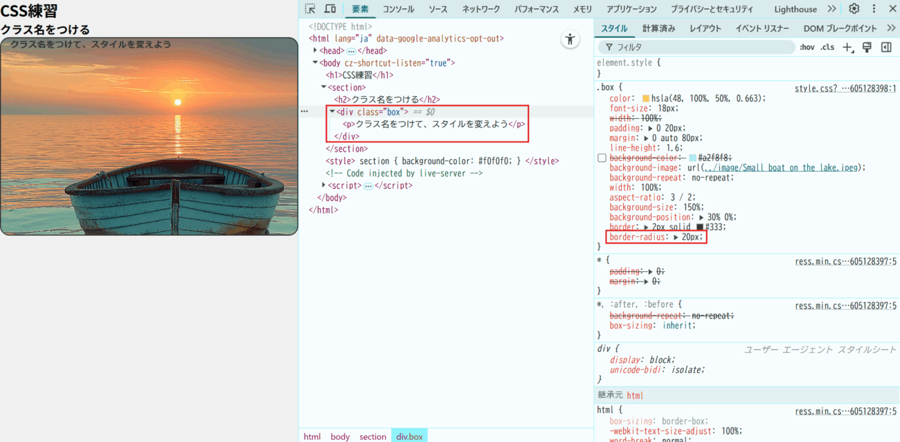 スタイルを設定したい要素には、予めクラス名(属性 class=”クラス名”)を設定しておきましょう。