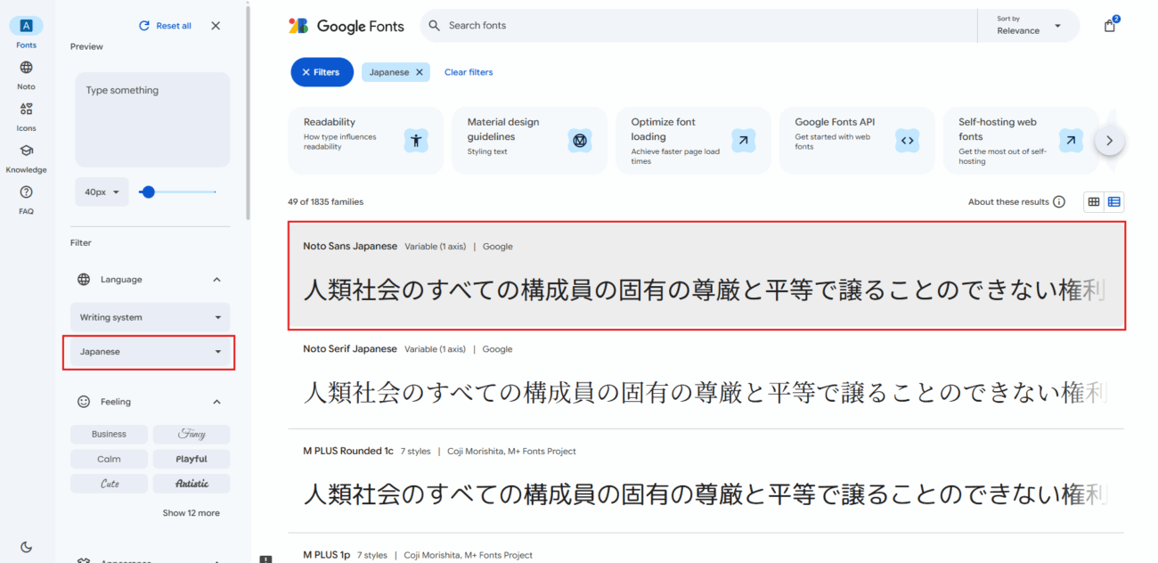 Google Fontsは、商用利用可能なフォントサービスです。無料で利用できます。