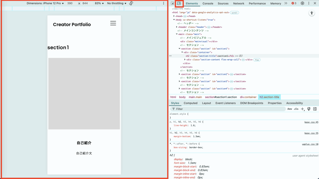 (複雑なデザインでは、セクション毎にブレイクポイントを変えることもあります)
