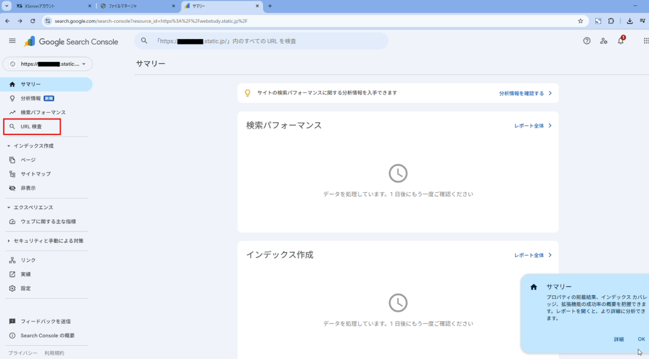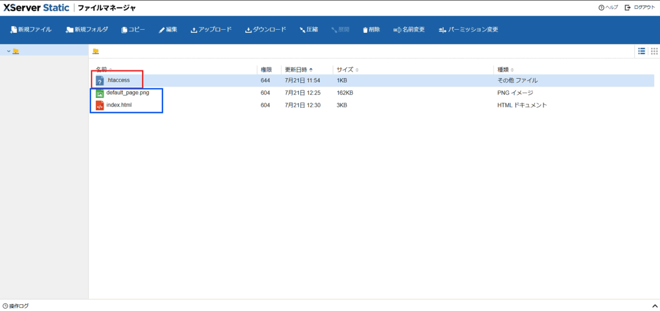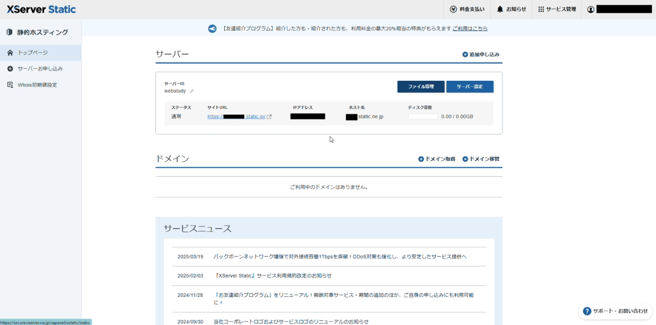 XSERVER Staticの管理画面が表示されます。