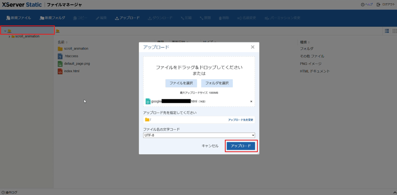 作成したフォルダ、またはルート(TOPの場所)へ、各ファイルをアップロードしましょう。