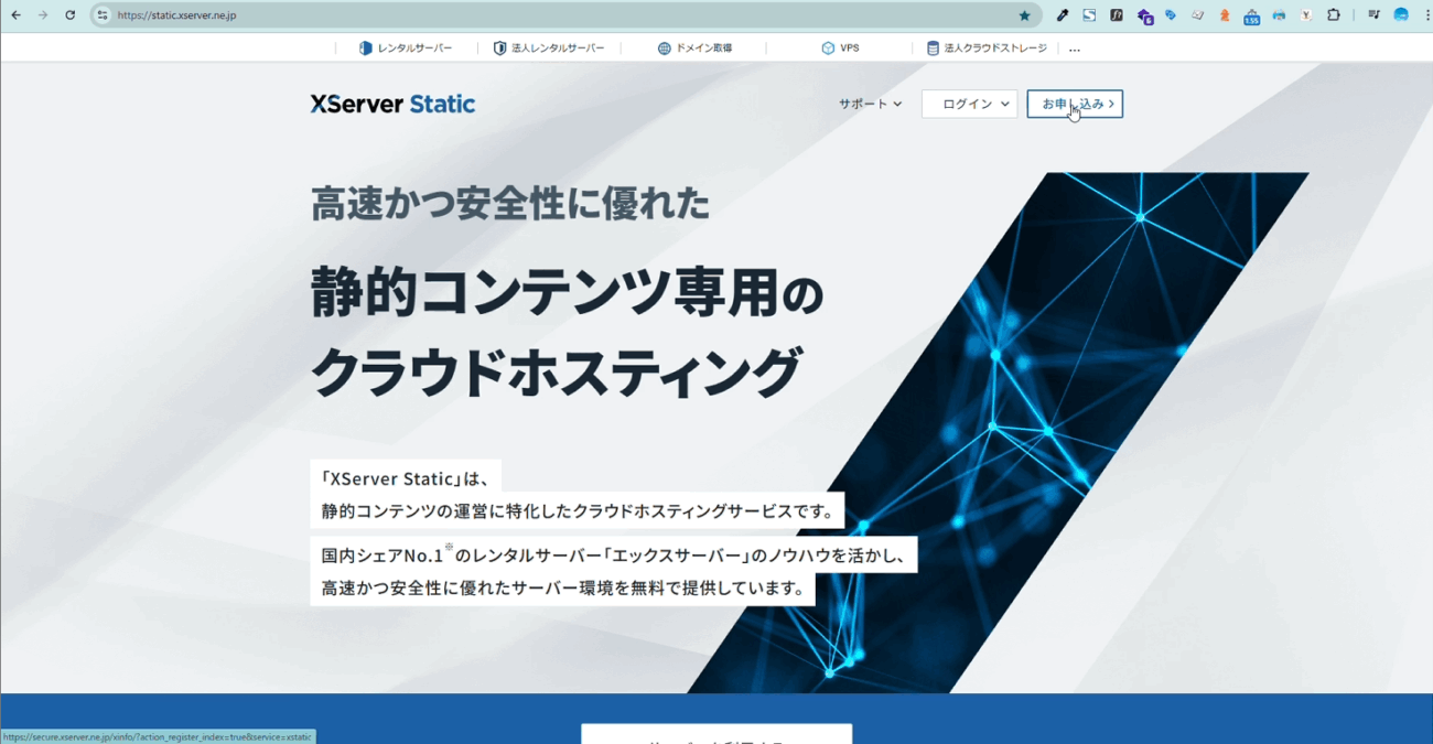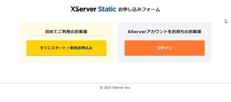 XSERVER Staticの申し込みページへ行く